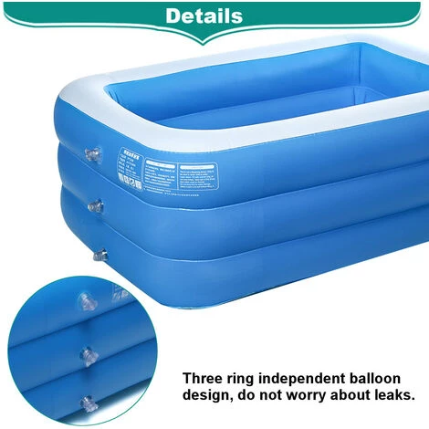 Emballage inclus?: 1 piscine gonflable Caractéristique?: 100?% tout neuf. Fabriqué pour être non toxique et durable, ce bain gonflable respectueux de l’environnement est fabriqué en PVC haute densité. Trois anneaux Conception de ballon indépendante, ne vous inquiétez pas des fuites. Conception de drain portable, drainage facile. Conception à fond de bulle, éloignez-vous du sol frais, pour augmenter la sécurité des enfants jouant à l’eau et au ballon océan. Facilement pliable et rangeable, vous pouvez en profiter l’heure du spa à tout moment, n’importe où, simplement en le pompant.?Les trempettes régulières sont connues pour aider à éliminer les toxines dans le corps, à améliorer la peau et à affiner le corps. Idéal pour les bébés nageurs, jouer.?Conseils?: 1) Ne versez pas l’eau bouillante (<50℃) directement dans la piscine, pour éviter d’endommager la piscine, vous devez d’abord verser de l’eau froide puis de l’eau chaude?; 2) Modération gonflable, 80% est recommandé?; 3) Pour éviter les objets pointus ou les produits chimiques.?Avis:1.La couleur réelle de l’article peut être légèrement différente des images affichées sur le site Web en raison de nombreux facteurs tels que la luminosité de votre moniteur et la luminosité de la lumière.2.Veuillez permettre un léger écart pour les données de mesure.3.Veuillez permettre 1 -3cm d’erreur.?Si vous avez des questions, n’hésitez pas à nous le faire savoir. J’espère que vous passerez un bon moment de shopping?!