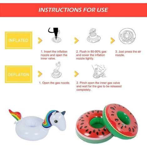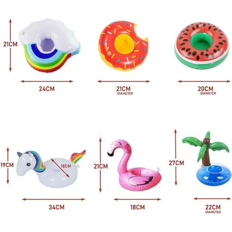 Ces porte-gobelets sont conçus dans une variété de formes uniques, y compris la licorne, le palmier, le flamant rose, la pastèque, l’arc-en-ciel, le beignet. Ces porte-gobelets sont pleins d’ambiance estivale. Les formes colorées ajoutent une atmosphère estivale à votre piscine et à votre baignoire. Vous pouvez profiter des fêtes d’été à tout moment et n’importe où.