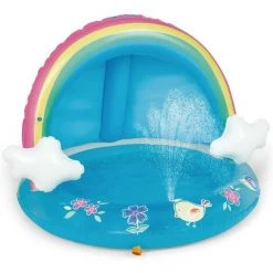 Design unique avec abat-jour et arroseur : notre piscine pour bébé arc-en-ciel avec auvent pour enfants, bébés ou animaux de compagnie, protection Rainbow Canopy pour protéger la peau sensible des bébés des rayons nocifs du soleil. C’est un gonflable parfait jouets aquatiques en plein air.