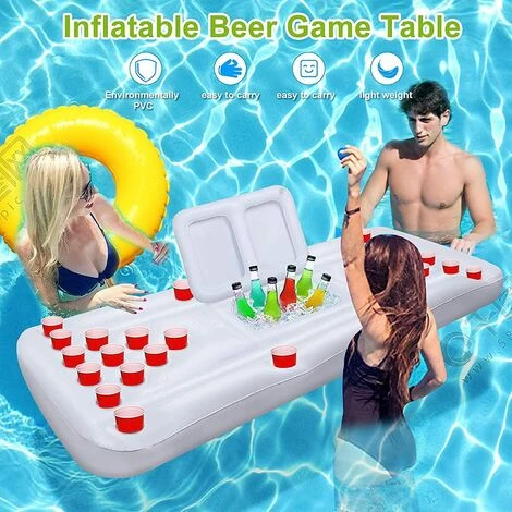 4.【Grande Taille de L’espace】: Longueur 180 cm x largeur 90 cm, ce flotteur de piscine a 28 trous pour la flottaison sociale, afin que vous et vos amis puissiez flotter autour de la table et jouer entre les tapis de ping-pong à la bière.