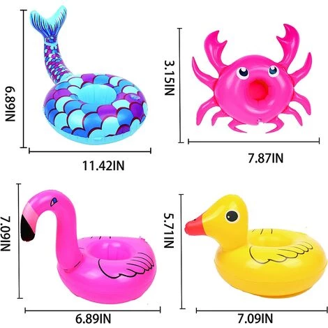 Matériaux de haute qualité – Matériau PVC respectueux de l’environnement avec non toxique, durable et réutilisable. Couture serrée, ne basculera pas. Équilibré bien et de manière stable sur l’eau de la piscine. Ajustement parfait – Ces anneaux de bain sont conçus pour s’adapter parfaitement aux poupées de 30 cm de haut. Ou pour les porte-gobelets gonflables Pool Party et Kids Bath ToysConception pratique – La conception légère et gonflable est portable, idéale pour garder votre boisson à portée de main dans les piscines, les bains à remous, les lacs, les océans et plus encore. La forme multi mignonne sera appréciée des adultes et des enfants. Large utilisation – Enterrement de vie de jeune fille, fête d’anniversaire à thème et plus encore. Non seulement peut être utilisé pour les porte-gobelets de piscine et les cadeaux de fête, mais aussi pour les jouets amusants de piscine ou de baignoire pour les enfants. cocotier, crabe, arc-en-ciel, ananas, pastèque, queue de poisson beauté, beignet, canard.