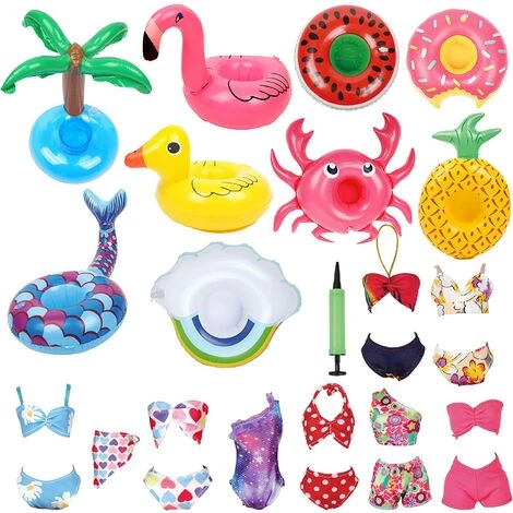 BAICCCF 9 PCS Piscine Gonflable Piscine Floaties Piscine Anneau De Fête Accessoires Porte-Boisson Gonflable Pour 30 CM Fille Poupées Tasse Dessous De Verre Pour Enfants Piscine Jouets
