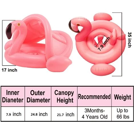 Dimension et adapté Ce flotteur pour bébé flamant rose convient aux bébés âgés de 6 mois à 4 ans (convient pour un poids de bébé maximum jusqu’à 66 lb). Si bébé dépasse le poids, veuillez faire particulièrement attention. Remarque : l’anneau de bain pour bébé n’est pas fournitures vitales, les bébés sont obligatoirement accompagnés d’un tuteur ! Matériau de sécurité : les flotteurs de natation pour bébé sont fabriqués en PVC durable respectueux de l’environnement, sans toxique et sans danger pour la peau de bébé, double airbag, antidérapant, très robuste et sans problème de fuite, définitivement conçu pour une utilisation pendant des années. La belle La forme flamant rose attirera votre bébé vers les joies de l’eau, et libre de nager durablement et avec un excellent support de flottabilité explose facilement comme cadeau idéal pour les enfants. Design unique avec siège : le flotteur de piscine pour bébé mciskin est livré avec un siège renforcé. Le coussin de siège épais et gonflable rend les fesses de bébé non serrées et prend bien soin de la peau tendre de bébé, empêche efficacement les blessures pendant le déplacement et le jeu. Super plaisir d’été avec ce flotteur de piscine gonflable flamant rose. Gardez bébé à l’aise dans les moments de plaisir aquatique. Idéal pour que les enfants apprennent à nager.