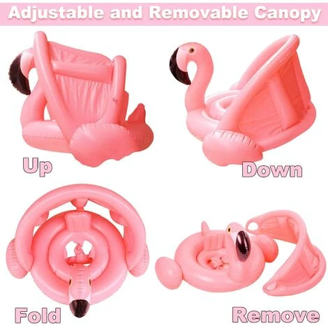 BAICCCF Piscine Enfant Flotteur De Piscine Pour Bébé Flamant Rose Avec Auvent Flotteurs De Natation Gonflables Pour Enfants, Flotteur De Piscine Pour Tout-petits