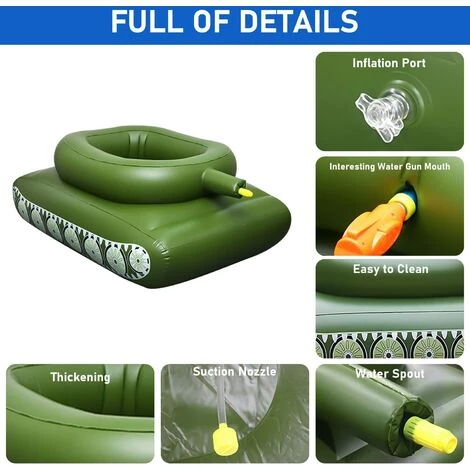 C’est un flotteur de réservoir et il peut tirer de l’eau. Profitez de la bataille d’eau et mettez-vous à couvert contre le réservoir gonflable pour vous protéger. Le blaster à pompe est amovible, vous pouvez donc également l’utiliser seul. Dominez la piscine cet été avec ce réservoir gonflé géant. Jouet de piscine gonflable parfait pour cet été. Commencez votre ultime bataille d’eau avec vos amis et votre famille. Il sera préférable d’avoir plus d’un flotteur de réservoir, car c’est la bataille de la fête de la piscine. Il peut être utilisé dans les piscines, les rivières, les lacs et les océans. Confortable pour s’adapter à un enfant, un adolescent ou un adulte à l’intérieur. Il est également livré avec un tuyau qui se fixe directement au canon et tire l’eau de la piscine pour faire exploser vos ennemis avec des tonnes d’eau. Notre flotteur de piscine gonflable est fabriqué à partir de vinyle durable et est sûr de résister aux combats d’eau les plus durs. Facile à gonfler avec pompe à air.