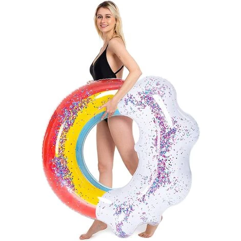 paquet de tube de piscine arc-en-ciel coloré avec des paillettes brillantes, sans aucun doute le flotteur de piscine préféré pour les enfants et les adultes. La taille gonflée approximative est (117 x 112 x 35 cm), idéale pour les adultes et les enfants. décorations de fêtes de piscine d’étéCe tube de piscine arc-en-ciel est fait de vinyle de haute qualité, un matériau plus épais, de meilleure qualité et plus durable que tout autre produit sur le marchéBright and Sparkle votre été pour ajouter plus de plaisir! Les paillettes à l’intérieur refléteront la lumière et scintilleront au soleil pour que votre flamant rose ait fière allure