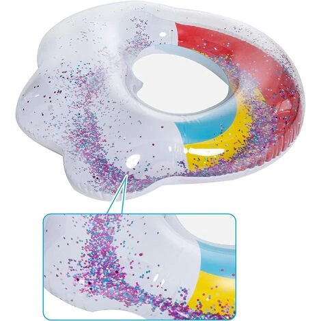 BAICCCF Piscine Gonflable 117 X 112 X 35 Cm Flotteur De Piscine Gonflable Géant Arc-en-ciel Avec Paillettes à L’intérieur,chaise Longue De Radeau De Piscine D’été Pour Adultes Et Enfants