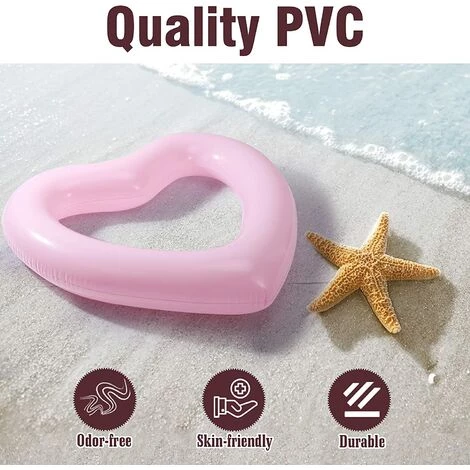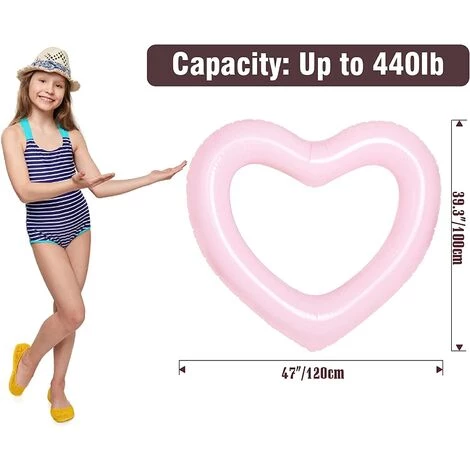 QUALITÉ SUPÉRIEURE – fabriqué avec du PVC écologique de qualité supérieure, couleur rapide, non toxique et inodore, ultra sûr et durable. LA TAILLE COMPTE – mesure 120×100 cm, il est assez grand pour supporter jusqu’à 200 kg de poids.VALVE DE MISE À NIVEAU – a un gonflage/dégonflage séparé Valve, fois plus rapide de gonflage/dégonflage que les valves générales. MIGNON ET PRATIQUE – forme d’amour unique, peut être utilisé comme un anneau de bain, un flotteur de piscine confortable ou des salons de piscine lorsque vous avez besoin de repos. MULTI-USAGE – idéal pour la piscine, la plage, lac, jouets de fête, plaisirs aquatiques, accessoires de spectacles, décoration, cadeaux d’été, etc.