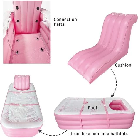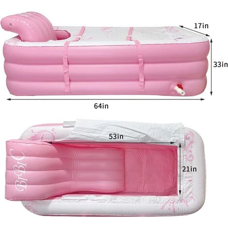 Taille appropriée : (extérieur : 163 x 84 x 43 cm, intérieur : 135 x 53 x 43 cm). Cette baignoire gonflable portable vous offre beaucoup d’espace et est livrée avec son propre oreiller de baignoire pour vous offrir un moment de spa plus confortable. Design SPA confortable : Le motif de ce spa portable gonflable est beau et élégant, adapté à vous et à votre famille qui prône la mode et le goût de la vie élégante. Vous pouvez fermer le couvercle et le verrouiller pour garder la baignoire autoportante au chaud pendant une heure. Vous pouvez pomper de l’eau à tout moment pour profiter des services du spa. Avec coussin assemblable : l’angle d’inclinaison de 105° est conçu de manière ergonomique, l’appui-tête et le coussin de siège permettent à votre corps de se détendre dans le bain à remous gonflable pour adultes, et les adultes peuvent librement étirer leurs jambes dans le bain à remous portatif. Le coussin de démontage peut être amovible, puis la baignoire gonflable extérieure peut être utilisée comme piscine. Drainage rapide : avec interrupteur de vidange externe et bouchon de vidange inférieur, le double drainage est plus rapide, et la grande conception de drainage de l’air de type bouton airbag indépendant de la buse. Matériau de haute qualité et maintien au chaud : nos baignoires pour salle de bain utilisent un matériau en PVC de haute qualité, qui est non seulement non toxique et inodore, mais peut également être plié plusieurs fois, durable, longue durée de vie, pas facile à endommager, résistant à la chaleur. 20°-60°, adapté à toutes les saisons. La baignoire portable peut mieux maintenir la température après avoir fermé le couvercle avec une forme de baignoire fixe à boucle télescopique qui peut vous permettre de vous détendre et de profiter de votre temps de spa.