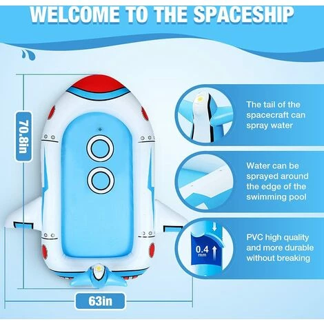 【Cool Spaceship Splash Pad】 — La piscine gonflable est une forme de vaisseau spatial unique. La queue et le bord du vaisseau spatial ont une fonction de pulvérisation d’eau, c’est l’idéal pour les éclaboussures pour les enfants de 4 à 8 ans. Les enfants peuvent sauter, glisser et même s’allonger dessus. c’est le grand jouet d’été pour bébé ou enfant.【Matériau PVC de haute qualité】—La piscine pour bébé est fabriquée en PVC respectueux de l’environnement et est plus épaisse que les autres Splash Pad, garantissant une durabilité absolue.【Facile à utiliser】– -Utilisez une pompe à air pour gonfler (non incluse); Installez et serrez l’entrée d’eau pour éviter les fuites d’eau ; Connectez ensuite la piscine d’arrosage gonflable au tuyau d’arrosage.