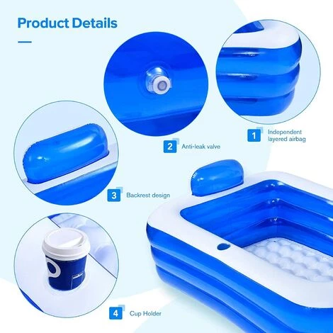 2. Une fois la piscine gonflable gonflée, l’épaisseur de la paroi de la piscine est d’environ 15 à 20 cm de long en fonction de la taille de la piscine. La longueur et la largeur doivent être soustraibles à partir de deux épaisseurs de paroi gonflées, qui correspond à la longueur finale et à la largeur du produit.