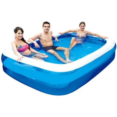 ? Piscine pour Enfants 262x175x50CM, bleu&blanc,poids 4.5kg, peut accueillir 1 à 5 personnes.Convient à une famille nombreuse comprenant des parents et plusieurs enfants. Fabriquée avec du PVC de 0.4mm, sans danger pour les enfants et 50% plus épais que la plupart des PVC disponibles sur le marché. Possède une fonction débordement afin de conserver un niveau d’eau s?r pour éviter le débordement.