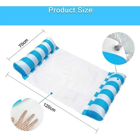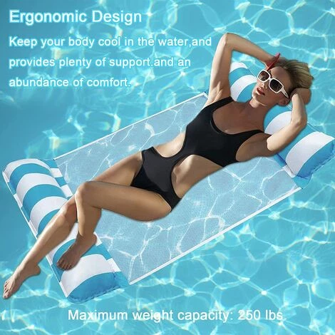 Hamac gonflable multifonctionnel quatre en un : conception unique de lit flottant, peut être utilisé comme hamac, chaise de loisirs, fesses et chaise de sport, objets flottants parfaits dans le l’eau, vous offre une expérience différente, vous pouvez librement changer de posture dans le hamac aquatique, vous pouvez également vous amuser et vous divertir dans la piscine.
