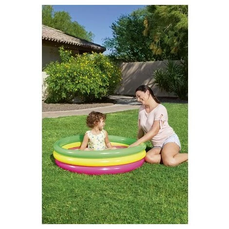 Piscina gonfiabile per bambini Set estivo di Bestway con struttura di tre anelli di diversi colori. Consigliata per bambini dai 2 anni in su, la piscina ha pavimenti imbottiti per un maggiore comfort. Con un capacidad di 62 litri e misure di 105×25 cm la piscina gonfiabile per bambini Bestway PLAY Summer è un nuovo prodotto fornito con una garanzia del produttore Bestway. Avvertenza di seguridad Non appropriato per i bambini sotto i 3 anni di età Contenuto della scatola Pisicina; gonfiabile; estate; giardino