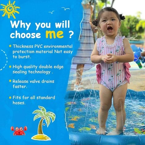 Conception crativeLe tapis de jeu dclaboussures peut rpondre pleinement lespace de jeu de plusieurs enfants, le large bord ondul assure que le spray est pulvris vers lintrieur et le matriau textur vous empche, vous et votre enfant, de tomber facilement.
