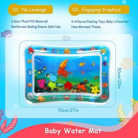 ★ 【Sea World Activity Center】 Ce tapis d’eau pour bébé présente des motifs lumineux et colorés et un thème marin unique qui rendront votre bébé excitant, tout comme entrer dans le monde sous-marin. Il essaie de les saisir ou de les toucher, ce qui augmente considérablement le plaisir du temps sur le ventre. Les bébés tomberont amoureux de ce tapis d’eau unique sur le thème marin.