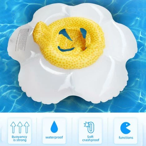 The cute yellow sun flower swimming ring with bright colors can arouse your baby’s interest.