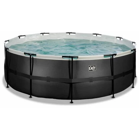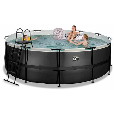 EXIT Black Leather zwembad ø427x122cm met filterpomp – zwart Het EXIT Black Leather zwembad ø427 x 122 cm is een rond frame zwembad met een zwarte leren print. Het zwembad is standaard voorzien van een filterpomp en een zwembadtrap, waarmee je veilig het zwembad in en uit kunt stappen. Door de grote diameter van het zwembad is er genoeg ruimte om heerlijk op een luchtbed te dobberen. En wil je toch liever onder water zwemmen? Het EXIT Black Leather zwembad is maar liefst 122 centimeter diep waardoor je echt onder water kunt duiken. Met het hoogwaardige frame zwembad van EXIT Toys beleef je gegarandeerd de leukste wateravonturen in je eigen tuin! Een mooi zwembad voor in je tuin Het EXIT Black Leather zwembad heeft een luxe uitstraling dankzij het unieke leerpatroon. Door de zwarte buitenkant en lichtgrijze binnenkant staat er een stijlvol en modern zwembad in de tuin. Het EXIT zwembad is uitgevoerd met sterke 3-laags wanden van pvc en polyester. De ronde vorm van het zwembad creëert een gezellige sfeer en zorgt ervoor dat je eenvoudig met meerdere personen plezier kunt beleven in het zwembad. Ontdek wie het snelst een baantje kan trekken, dobber samen rond op een luchtbed of duik speeltjes van de bodem op. Kortom: met de ronde zwembaden van EXIT Toys verveel je je geen moment. Jarenlang een frisse duik in je zwembad Ontdek hoe stevig een rond opzetzwembad kan zijn: het gepoedercoate stalen frame en de sterke poten van het EXIT Black Leather zwembad zorgen ervoor dat het bad altijd stabiel staat en jarenlang meegaat. De meegeleverde filterpomp houdt het water schoon en in beweging zodat vervuiling van het water wordt tegengegaan. In het EXIT Black Leather zwembad neem je altijd een frisse duik! Standaard inbegrepen * Zwart stalen zwembadframe ø427 x 122 cm * Zwarte liner met stijlvol leerpatroon * Filterpomp met cartridge * Liner reparatieset * Zwembadtrap * Handleiding framebad (https://www.exittoys.nl/zwembad-o427x122cm-met-filterpomp/handleiding-zwembad-o427x122cm-met-filterpomp-db96edb0.pdf) * Handleiding pomp (https://www.exittoys.nl/zwembad-o427x122cm-met-filterpomp/handleiding-zwembad-o427x122cm-met-filterpomp-ed8d71a5.pdf) * Handleiding zwembadtrap (https://www.exittoys.nl/zwembad-o427x122cm-met-filterpomp/handleiding-zwembad-o427x122cm-met-filterpomp-94c84de3.pdf)