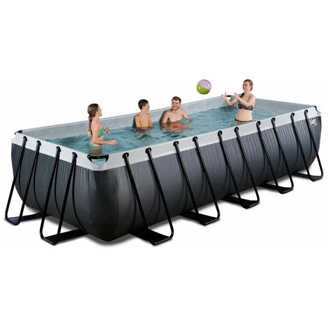EXIT Black Leather zwembad 540x250x122cm met filterpomp – zwart Het EXIT Black Leather zwembad 540 x 250 x 122 cm is een rechthoekig frame zwembad met een zwarte leren print. Dit grote zwembad is standaard voorzien van een filterpomp en een zwembadtrap, waarmee je veilig het zwembad in en uit kunt stappen. Het frame zwembad biedt genoeg ruimte om heerlijk op een luchtbed te dobberen. En wil je toch liever onder water zwemmen? Het EXIT Black Leather zwembad is maar liefst 122 centimeter diep waardoor je echt onder water kunt duiken. Met het hoogwaardige frame zwembad van EXIT Toys beleef je gegarandeerd de leukste wateravonturen in je eigen tuin! Een frisse duik in je zwembad Het EXIT Black Leather zwembad heeft een luxe uitstraling dankzij het unieke leerpatroon. Door de zwarte buitenkant en lichtgrijze binnenkant staat er een stijlvol en modern zwembad in de tuin. Het EXIT zwembad is uitgevoerd met sterke 3-laags wanden van PVC en polyester voor optimale stevigheid. Het zwembad is geschikt voor maar liefst negen personen en omdat het zwembad diep is, kun je ook baantjes trekken en onder water duiken. De meegeleverde filterpomp houdt het water fris en in beweging zodat vervuiling van het water wordt tegengegaan. Stabiel en sterk! Het frame zwembad is niet alleen uniek, maar ook stabiel en sterk. Het stalen zwarte frame van het zwembad is extra dik met een diameter van 50 mm en de frame-poten zorgen voor optimale stabiliteit, zodat het zwembad altijd stevig blijft staan. Natuurlijk is er ook aan duurzaamheid gedacht: het zwarte frame is gegalvaniseerd en gepoedercoat zodat roest geen kans maakt. Het Duplex Coating Systeem noemen we dat bij EXIT Toys. Tijd voor een frisse duik in je eigen EXIT zwembad in de tuin! Standaard inbegrepen * Zwart stalen zwembadframe 540 x 250 x 122 cm * Zwarte liner met stijlvol leerpatroon * Filterpomp met cartridge * Zwembadtrap * Liner reparatieset * Handleiding framebad (https://www.exittoys.nl/zwembad-540x250x122cm-met-filterpomp/handleiding-zwembad-540x250x122cm-met-filterpomp-d02318be.pdf) * Handleiding pomp (https://www.exittoys.nl/zwembad-540x250x122cm-met-filterpomp/handleiding-zwembad-540x250x122cm-met-filterpomp-ed8d71a5.pdf) * Handleiding zwembadtrap (https://www.exittoys.nl/zwembad-540x250x122cm-met-filterpomp/handleiding-zwembad-540x250x122cm-met-filterpomp-94c84de3.pdf)