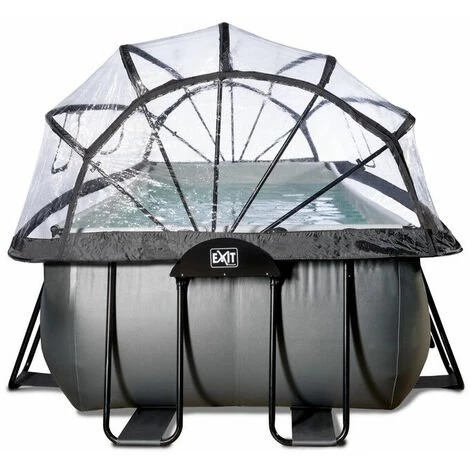 EXIT Black Leather zwembad 540x250x122cm met overkapping en zandfilterpomp – zwart Het EXIT Black Leather zwembad 540 x 250 x 122 cm is een rechthoekig frame zwembad met een zwarte leren print en overkapping. Dit grote zwembad is standaard voorzien van een zandfilterpomp en een zwembadtrap, waarmee je veilig het zwembad in en uit kunt stappen. Het frame zwembad biedt genoeg ruimte om heerlijk op een luchtbed te dobberen. En wil je toch liever onder water zwemmen? Het EXIT Black Leather zwembad is maar liefst 122 centimeter diep waardoor je echt onder water kunt duiken. De frame zwembaden met overkapping van EXIT Toys zijn multifunctioneel, duurzaam en dé perfecte oplossing voor wisselvallig zomerweer! Een frisse duik in je zwembad! Het EXIT Black Leather zwembad heeft een luxe uitstraling dankzij het unieke leerpatroon. Door de zwarte buitenkant en lichtgrijze binnenkant staat er een stijlvol en modern zwembad in de tuin. Het EXIT zwembad is uitgevoerd met sterke 3-laags wanden van PVC en polyester voor optimale stevigheid. Het zwembad is geschikt voor maar liefst negen personen en omdat het zwembad diep is, kun je ook baantjes trekken en onder water duiken. Het meegeleverde watercirculatiesysteem maakt dit zwembad helemaal af. De hoogwaardige zandfilterpomp reinigt de kleinste deeltjes uit het zwembad door het water krachtig door het filterbed heen te pompen. Dit zorgt ervoor dat vuil, zoals zand, ongedierte of algen achterblijven in het filter. Multifunctionele zwembadoverkapping Met de EXIT overkapping voor zwembaden ben je niet langer afhankelijk van de weersvoorspellingen. De overkapping zorgt ervoor dat er geen vuil meer in het water kan komen en is tegelijkertijd een duurzame oplossing voor het verwarmen van je water, want de warmte van de zon wordt onder de kap vastgehouden. De overkapping is transparant en zeer eenvoudig te openen door geïntegreerde gasdrukveren. Ook heeft de overkapping drie opvouwbare ramen en een deur. Kortom: in weer en wind genieten van je zwembad. Stabiel en sterk! Het frame zwembad is niet alleen uniek, maar ook stabiel en sterk. Het stalen zwarte frame van het zwembad is extra dik met een diameter van 50 mm en de frame-poten zorgen voor optimale stabiliteit, zodat het zwembad altijd stevig blijft staan. Natuurlijk is er ook aan duurzaamheid gedacht: het zwarte frame is gegalvaniseerd en gepoedercoat zodat roest geen kans maakt. Het Duplex Coating Systeem noemen we dat bij EXIT Toys. Tijd voor een frisse duik in je eigen EXIT zwembad in de tuin! Standaard inbegrepen * Zwart stalen zwembadframe 540 x 250 x 122 cm * Zwarte liner met stijlvol leerpatroon * Overkapping met drie ramen en een deur 585 x 270 cm * Zandfilterpomp (filtermateriaal is niet inbegrepen) * Zwembadtrap * Liner reparatieset * Handleiding framebad (https://www.exittoys.nl/zwembad-540x250x122cm-met-overkapping-en-zandfilterpomp/handleiding-zwembad-540x250x122cm-met-overkapping-en-zandfilterpomp-d02318be.pdf) * Handleiding overkapping (https://www.exittoys.nl/zwembad-540x250x122cm-met-overkapping-en-zandfilterpomp/handleiding-zwembad-540x250x122cm-met-overkapping-en-zandfilterpomp-e8891471.pdf) * Handleiding pomp (https://www.exittoys.nl/zwembad-540x250x122cm-met-overkapping-en-zandfilterpomp/handleiding-zwembad-540x250x122cm-met-overkapping-en-zandfilterpomp-0f78a221.pdf) * Handleiding zwembadtrap (https://www.exittoys.nl/zwembad-540x250x122cm-met-overkapping-en-zandfilterpomp/handleiding-zwembad-540x250x122cm-met-overkapping-en-zandfilterpomp-94c84de3.pdf)