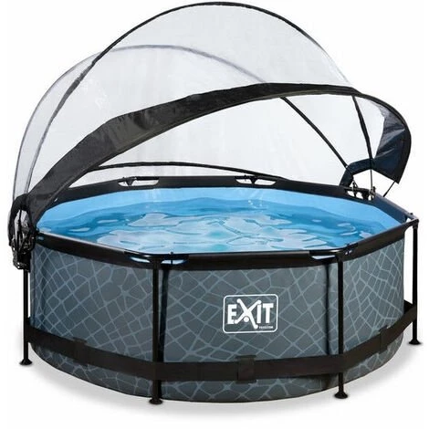 EXIT Stone zwembad ø244x76cm met overkapping en filterpomp – grijs Het EXIT Stone zwembad ø244x76cm is een rond grijskleurig frame zwembad met overkapping. Het compacte zwembad is standaard voorzien van een filterpomp en valt op tussen andere zwembaden door zijn stoere steenpatroon. Ben je op zoek naar een leuk en tegelijkertijd uniek en hoogwaardig frame zwembad in je tuin? Steel de show met de ronde zwembaden van EXIT Toys. Jarenlang een frisse duik in je zwembad Ontdek hoe stevig een rond opzetzwembad kan zijn: het gepoedercoate stalen frame en de sterke poten van het EXIT Stone zwembad zorgen ervoor dat het bad altijd stabiel staat en jarenlang meegaat. De meegeleverde filterpomp houdt het water schoon en in beweging zodat vervuiling van het water wordt tegengegaan. In het EXIT Stone zwembad neem je altijd een frisse duik. Multifunctionele zwembad overkapping Met de EXIT overkapping voor zwembaden ben je niet langer afhankelijk van de weersvoorspellingen. De overkapping zorgt ervoor dat er geen vuil meer in het water kan komen en is tegelijkertijd een duurzame oplossing voor het verwarmen van je water, want de warmte van de zon wordt onder de kap vastgehouden. De overkapping is zeer eenvoudig te openen door een uniek scharniermechanisme en dankzij het transparante zeil mis je niets van wat er buiten het bad gebeurt. Kortom: in weer en wind genieten van je zwembad. Een mooi zwembad voor in je tuin Het stoere steenpatroon en zwarte frame geven het Stone zwembad een unieke uitstraling en dankzij de natuurlijke look integreert het zwembad volledig in je tuin. De binnenzijde van het zwembad is blauw, zodat je het frisse zwembad gevoel houdt. De ronde vorm van het zwembad creëert een gezellige sfeer en zorgt ervoor dat je eenvoudig met meerdere personen plezier kunt beleven in je zwembad. Kies voor de zwembaden van EXIT Toys, een echte musthave voor in je tuin tijdens de zomer! Standaard inbegrepen * Zwart stalen zwembadframe ø244x76cm * Grijze liner met stoer steenpatroon * Zwembad overkapping ø264cm * Filterpomp met cartridge * Liner reparatieset * Handleiding framebad (https://www.exittoys.nl/zwembad-o244x76cm-met-overkapping-en-filterpomp/handleiding-zwembad-o244x76cm-met-overkapping-en-filterpomp-7c55fd55.pdf) * Handleiding overkapping (https://www.exittoys.nl/zwembad-o244x76cm-met-overkapping-en-filterpomp/handleiding-zwembad-o244x76cm-met-overkapping-en-filterpomp-222d7aa5.pdf) * Handleiding pomp (https://www.exittoys.nl/zwembad-o244x76cm-met-overkapping-en-filterpomp/handleiding-zwembad-o244x76cm-met-overkapping-en-filterpomp-ed8d71a5.pdf)