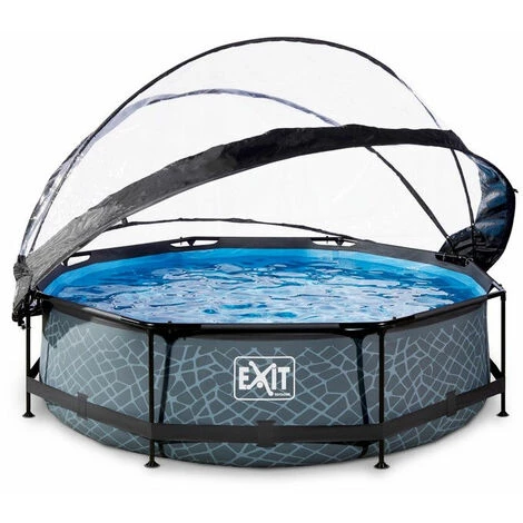 EXIT Stone zwembad ø300x76cm met overkapping en filterpomp – grijs Het EXIT Stone zwembad ø300x76cm is een rond grijskleurig frame zwembad met overkapping. Het zwembad is standaard voorzien van een filterpomp en valt op tussen andere zwembaden door zijn stoere steenpatroon. Ben je op zoek naar een leuk en tegelijkertijd uniek en hoogwaardig frame zwembad in je tuin? Steel de show met de ronde zwembaden van EXIT Toys! Jarenlang een frisse duik in je zwembad Ontdek hoe stevig een rond opzetzwembad kan zijn: het gepoedercoate stalen frame en de sterke poten van het EXIT Stone zwembad zorgen ervoor dat het bad altijd stabiel staat en jarenlang meegaat. De meegeleverde filterpomp houdt het water schoon en in beweging zodat vervuiling van het water wordt tegengegaan. De filterpomp kan eenvoudig aan het zwembad worden gemonteerd en door middel van filtercartridges wordt het water ververst. In het EXIT Stone zwembad neem je altijd een frisse duik! Multifunctionele zwembad overkapping Met de EXIT overkapping voor zwembaden ben je niet langer afhankelijk van de weersvoorspellingen. De overkapping zorgt ervoor dat er geen vuil meer in het water kan komen en is tegelijkertijd een duurzame oplossing voor het verwarmen van je water, want de warmte van de zon wordt onder de kap vastgehouden. De overkapping is zeer eenvoudig te openen door een uniek scharniermechanisme en dankzij het transparante zeil mis je niets van wat er buiten het bad gebeurt. Kortom: in weer en wind genieten van je zwembad. Een mooi zwembad voor in je tuin Het stoere steenpatroon en zwarte frame geven het Stone zwembad een unieke uitstraling en dankzij de natuurlijke look integreert het zwembad volledig in je tuin. De binnenzijde van het zwembad is blauw, zodat je het frisse zwembad gevoel houdt. De ronde vorm van het zwembad creëert een gezellige sfeer en zorgt ervoor dat je eenvoudig met meerdere personen plezier kunt beleven in je zwembad. Met de ronde zwembaden van EXIT Toys verveel je je geen moment. Bijpassende accessoires Voor het EXIT Stone zwembad zijn verschillende accessoires verkrijgbaar, zoals een grond- en afdekzeil, een chloordrijver, teststrips en een zwembad onderhoudsset om je zwembad optimaal te kunnen onderhouden. Kies voor de zwembaden met overkapping van EXIT Toys, een echte musthave voor in je tuin tijdens de zomer! Standaard inbegrepen * Zwart stalen zwembadframe ø300x76cm * Grijze liner met stoer steenpatroon * Zwembad overkapping ø320cm * Inclusief filterpomp met cartridge * Inclusief liner reparatieset * Handleiding framebad (https://www.exittoys.nl/wood-zwembad-o300x76cm-met-overkapping-en-filterpomp/handleiding-wood-zwembad-o300x76cm-met-overkapping-en-filterpomp-8532eaa5.pdf) * Handleiding overkapping (https://www.exittoys.nl/wood-zwembad-o300x76cm-met-overkapping-en-filterpomp/handleiding-wood-zwembad-o300x76cm-met-overkapping-en-filterpomp-9b8cc6ec.pdf) * Handleiding pomp (https://www.exittoys.nl/wood-zwembad-o300x76cm-met-overkapping-en-filterpomp/handleiding-wood-zwembad-o300x76cm-met-overkapping-en-filterpomp-ed8d71a5.pdf)