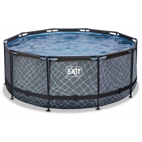 EXIT Stone zwembad ø360x122cm met filterpomp – grijs Het EXIT Stone zwembad ø360 x 122 cm is een rond grijskleurig frame zwembad. Het zwembad is standaard voorzien van een filterpomp en een zwembadtrap, waarmee je veilig het zwembad in en uit kunt stappen. Het frame zwembad biedt genoeg ruimte om heerlijk op een luchtbed te dobberen. En wil je toch liever onder water zwemmen? Het EXIT Stone zwembad is maar liefst 122 centimeter diep waardoor je echt onder water kunt duiken. Met het hoogwaardige frame zwembad van EXIT Toys beleef je gegarandeerd de leukste wateravonturen in je eigen tuin! Een mooi zwembad voor in je tuin Het Stone zwembad heeft een modern en stoer steenpatroon op de zijkant en is daarmee een échte blikvanger in de tuin. De binnenzijde van het zwembad is blauw, voor het frisse zwembadgevoel. Het EXIT zwembad is uitgevoerd met sterke 3-laags wanden, van PVC en polyester. De ronde vorm van het zwembad creëert een gezellige sfeer en zorgt ervoor dat je eenvoudig met meerdere personen plezier kunt beleven in het zwembad. Ontdek wie het snelst een baantje kan trekken, dobber samen rond op een luchtbed of duik speeltjes van de bodem op. Kortom: met de ronde zwembaden van EXIT Toys verveel je je geen moment. Jarenlang een frisse duik in je zwembad Ontdek hoe stevig een rond opzetzwembad kan zijn: het gepoedercoate stalen frame en de sterke poten van het EXIT Stone zwembad zorgen ervoor dat het bad altijd stabiel staat en jarenlang meegaat. De meegeleverde filterpomp houdt het water schoon en in beweging zodat vervuiling van het water wordt tegengegaan. De filterpomp kan eenvoudig aan het zwembad worden gemonteerd en door middel van filtercartridges wordt het water ververst. In het EXIT Stone zwembad neem je altijd een frisse duik! Standaard inbegrepen * Zwart stalen zwembadframe ø360 x 122 cm * Grijze liner met stoer steenpatroon * Inclusief filterpomp met cartridge * Inclusief liner reparatieset * Inclusief zwembadtrap * Handleiding framebad (https://www.exittoys.nl/zwembad-o360x122cm-met-filterpomp/handleiding-zwembad-o360x122cm-met-filterpomp-c80fbb5f.pdf) * Handleiding pomp (https://www.exittoys.nl/zwembad-o360x122cm-met-filterpomp/handleiding-zwembad-o360x122cm-met-filterpomp-ed8d71a5.pdf) * Handleiding zwembadtrap (https://www.exittoys.nl/zwembad-o360x122cm-met-filterpomp/handleiding-zwembad-o360x122cm-met-filterpomp-ee4caa54.pdf)