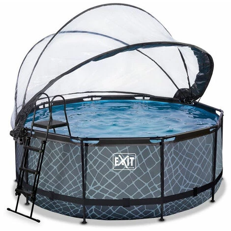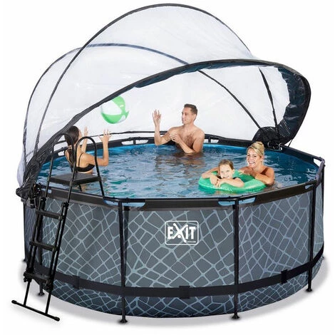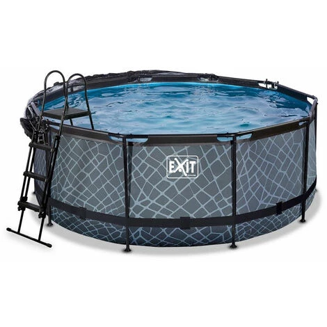 EXIT Stone zwembad ø360x122cm met overkapping en zandfilterpomp – grijs Het EXIT Stone zwembad ø360 x 122 cm is een rond grijskleurig frame zwembad met overkapping. Het zwembad is standaard voorzien van een zandfilterpomp en een zwembadtrap, waarmee je veilig het zwembad in en uit kunt stappen. Het frame zwembad biedt genoeg ruimte om heerlijk op een luchtbed te dobberen. En wil je toch liever onder water zwemmen? Het EXIT Stone zwembad is maar liefst 122 centimeter diep waardoor je echt onder water kunt duiken. Met het hoogwaardige frame zwembad van EXIT Toys beleef je gegarandeerd de leukste wateravonturen in je eigen tuin! Een mooi zwembad voor in je tuin Het Stone zwembad heeft een modern en stoer steenpatroon op de zijkant en is daarmee een échte blikvanger in de tuin. De binnenzijde van het zwembad is blauw, voor het frisse zwembadgevoel. Het EXIT zwembad is uitgevoerd met sterke 3-laags wanden, van PVC en polyester. De ronde vorm van het zwembad creëert een gezellige sfeer en zorgt ervoor dat je eenvoudig met meerdere personen plezier kunt beleven in het zwembad. Ontdek wie het snelst een baantje kan trekken, dobber samen rond op een luchtbed of duik speeltjes van de bodem op. Kortom: met de ronde zwembaden van EXIT Toys verveel je je geen moment. Multifunctionele zwembad overkapping Met de EXIT overkapping voor zwembaden ben je niet langer afhankelijk van de weersvoorspellingen. De overkapping zorgt ervoor dat er geen vuil meer in het water kan komen en is tegelijkertijd een duurzame oplossing voor het verwarmen van je water, want de warmte van de zon wordt onder de kap vastgehouden. De overkapping is zeer eenvoudig te openen door een uniek scharniermechanisme en dankzij het transparante zeil mis je niets van wat er buiten het bad gebeurt. Met een zwembad overkappingen van EXIT Toys op je zwembad heb je zwemplezier in weer en wind! Jarenlang een frisse duik in je zwembad Ontdek hoe stevig een rond opzetzwembad kan zijn: het gepoedercoate stalen frame en de sterke poten van het EXIT Stone zwembad zorgen ervoor dat het bad altijd stabiel staat en jarenlang meegaat. En het meegeleverde watercirculatiesysteem maakt dit zwembad helemaal af. De hoogwaardige zandfilterpomp reinigt de kleinste deeltjes uit het zwembad door het water krachtig door het filterbed heen te pompen. Dit zorgt ervoor dat vuil, zoals zand, ongedierte of algen achter blijven in het filter. In het EXIT Stone zwembad neem je altijd een frisse duik! Standaard inbegrepen * Zwart stalen zwembadframe ø360 x 122 cm * Grijze liner met stoer steenpatroon * Zwembad overkapping ø380 cm * Inclusief zandfilterpomp (filtermateriaal is niet inbegrepen) * Inclusief zwembadtrap * Inclusief liner reparatieset * Handleiding framebad (https://www.exittoys.nl/zwembad-o360x122cm-met-overkapping-en-zandfilterpomp/handleiding-zwembad-o360x122cm-met-overkapping-en-zandfilterpomp-db96edb0.pdf) * Handleiding overkapping (https://www.exittoys.nl/zwembad-o360x122cm-met-overkapping-en-zandfilterpomp/handleiding-zwembad-o360x122cm-met-overkapping-en-zandfilterpomp-222d7aa5.pdf) * Handleiding pomp (https://www.exittoys.nl/zwembad-o360x122cm-met-overkapping-en-zandfilterpomp/handleiding-zwembad-o360x122cm-met-overkapping-en-zandfilterpomp-ce4b70f4.pdf) * Handleiding zwembadtrap (https://www.exittoys.nl/zwembad-o360x122cm-met-overkapping-en-zandfilterpomp/handleiding-zwembad-o360x122cm-met-overkapping-en-zandfilterpomp-94c84de3.pdf)