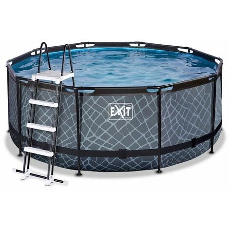 EXIT Stone zwembad ø360x122cm met zandfilterpomp – grijs Het EXIT Stone zwembad ø360 x 122 cm is een rond grijskleurig frame zwembad. Het zwembad is standaard voorzien van een zandfilterpomp en een zwembadtrap, waarmee je veilig het zwembad in en uit kunt stappen. Het frame zwembad biedt genoeg ruimte om heerlijk op een luchtbed te dobberen. En wil je toch liever onder water zwemmen? Het EXIT Stone zwembad is maar liefst 122 centimeter diep waardoor je echt onder water kunt duiken. Met het hoogwaardige frame zwembad van EXIT Toys beleef je gegarandeerd de leukste wateravonturen in je eigen tuin! Een mooi zwembad voor in je tuin Het Stone zwembad heeft een modern en stoer steenpatroon op de zijkant en is daarmee een échte blikvanger in de tuin. De binnenzijde van het zwembad is blauw, voor het frisse zwembadgevoel. Het EXIT zwembad is uitgevoerd met sterke 3-laags wanden, van PVC en polyester. De ronde vorm van het zwembad creëert een gezellige sfeer en zorgt ervoor dat je eenvoudig met meerdere personen plezier kunt beleven in het zwembad. Ontdek wie het snelst een baantje kan trekken, dobber samen rond op een luchtbed of duik speeltjes van de bodem op. Kortom: met de ronde zwembaden van EXIT Toys verveel je je geen moment. Jarenlang een frisse duik in je zwembad Ontdek hoe stevig een rond opzetzwembad kan zijn: het gepoedercoate stalen frame en de sterke poten van het EXIT Stone zwembad zorgen ervoor dat het bad altijd stabiel staat en jarenlang meegaat. En het meegeleverde watercirculatiesysteem maakt dit zwembad helemaal af. De hoogwaardige zandfilterpomp reinigt de kleinste deeltjes uit het zwembad door het water krachtig door het filterbed heen te pompen. Dit zorgt ervoor dat vuil, zoals zand, ongedierte of algen achter blijven in het filter. In het EXIT Stone zwembad neem je altijd een frisse duik! Standaard inbegrepen * Zwart stalen zwembadframe ø360 x 122 cm * Grijze liner met stoer steenpatroon * Inclusief zandfilterpomp (filtermateriaal is niet inbegrepen) * Inclusief zwembadtrap * Inclusief liner reparatieset * Handleiding framebad (https://www.exittoys.nl/zwembad-o360x122cm-met-zandfilterpomp/handleiding-zwembad-o360x122cm-met-zandfilterpomp-c80fbb5f.pdf) * Handleiding pomp (https://www.exittoys.nl/zwembad-o360x122cm-met-zandfilterpomp/handleiding-zwembad-o360x122cm-met-zandfilterpomp-0f78a221.pdf) * Handleiding zwembadtrap (https://www.exittoys.nl/zwembad-o360x122cm-met-zandfilterpomp/handleiding-zwembad-o360x122cm-met-zandfilterpomp-ee4caa54.pdf)