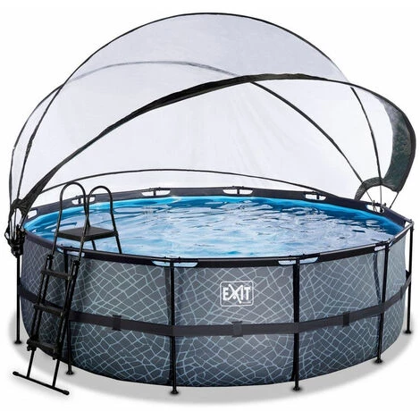 EXIT Stone zwembad ø427x122cm met overkapping en zandfilterpomp – grijs Het EXIT Stone zwembad ø427x 122 cm is een rond grijskleurig frame zwembad met overkapping. Het zwembad is standaard voorzien van een zandfilterpomp en een zwembadtrap, waarmee je veilig het zwembad in en uit kunt stappen. Door de grote diameter van het zwembad is er genoeg ruimte om heerlijk op een luchtbed te dobberen. En wil je toch liever onder water zwemmen? Het EXIT Stone zwembad is maar liefst 122 centimeter diep waardoor je echt onder water kunt duiken. Met het hoogwaardige frame zwembad van EXIT Toys beleef je gegarandeerd de leukste wateravonturen in je eigen tuin! Een mooi zwembad voor in je tuin Het Stone zwembad heeft een modern en stoer steenpatroon op de zijkant en is daarmee een échte blikvanger in de tuin. De binnenzijde van het zwembad is blauw, voor het frisse zwembadgevoel. Het EXIT zwembad is uitgevoerd met sterke 3-laags wanden van pvc en polyester. De ronde vorm van het zwembad creëert een gezellige sfeer en zorgt ervoor dat je eenvoudig met meerdere personen plezier kunt beleven in het zwembad. Ontdek wie het snelst een baantje kan trekken, dobber samen rond op een luchtbed of duik speeltjes van de bodem op. Kortom: met de ronde zwembaden van EXIT Toys verveel je je geen moment. Multifunctionele zwembad overkapping Met de EXIT overkapping voor zwembaden ben je niet langer afhankelijk van de weersvoorspellingen. De overkapping zorgt ervoor dat er geen vuil meer in het water kan komen en is tegelijkertijd een duurzame oplossing voor het verwarmen van je water, want de warmte van de zon wordt onder de kap vastgehouden. De overkapping is zeer eenvoudig te openen door een uniek scharniermechanisme en dankzij het transparante zeil mis je niets van wat er buiten het bad gebeurt. Met een zwembad overkapping van EXIT Toys op je zwembad heb je zwemplezier in weer en wind! Jarenlang een frisse duik in je zwembad Ontdek hoe stevig een rond opzetzwembad kan zijn: het gepoedercoate stalen frame en de sterke poten van het EXIT Stone zwembad zorgen ervoor dat het bad altijd stabiel staat en jarenlang meegaat. En het meegeleverde watercirculatiesysteem maakt dit zwembad helemaal af. De hoogwaardige zandfilterpomp reinigt de kleinste deeltjes uit het zwembad door het water krachtig door het filterbed heen te pompen. Dit zorgt ervoor dat vuil, zoals zand, ongedierte of algen achterblijven in het filter. In het EXIT Stone zwembad neem je altijd een frisse duik! Standaard inbegrepen * Zwart stalen zwembadframe ø427 x 122 cm * Grijze liner met stoer steenpatroon * Zwembad overkapping ø447cm * Zandfilterpomp (filtermateriaal is niet inbegrepen) * Zwembadtrap * Liner reparatieset * Handleiding framebad (https://www.exittoys.nl/zwembad-o427x122cm-met-overkapping-en-zandfilterpomp/handleiding-zwembad-o427x122cm-met-overkapping-en-zandfilterpomp-db96edb0.pdf) * Handleiding overkapping (https://www.exittoys.nl/zwembad-o427x122cm-met-overkapping-en-zandfilterpomp/handleiding-zwembad-o427x122cm-met-overkapping-en-zandfilterpomp-d05b21ff.pdf) * Handleiding pomp (https://www.exittoys.nl/zwembad-o427x122cm-met-overkapping-en-zandfilterpomp/handleiding-zwembad-o427x122cm-met-overkapping-en-zandfilterpomp-ce4b70f4.pdf) * Handleiding zwembadtrap (https://www.exittoys.nl/zwembad-o427x122cm-met-overkapping-en-zandfilterpomp/handleiding-zwembad-o427x122cm-met-overkapping-en-zandfilterpomp-94c84de3.pdf)