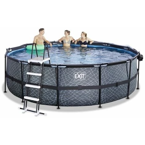 EXIT Stone zwembad ø450x122cm met overkapping en zandfilter- en warmtepomp – grijs Het EXIT Stone zwembad ø450 x 122 cm is een rond grijskleurig frame zwembad met overkapping. Het zwembad is standaard voorzien van een zandfilterpomp, warmtepomp en een zwembadtrap, waarmee je veilig het zwembad in en uit kunt stappen. Door de royale diameter van het zwembad is er genoeg ruimte om heerlijk op een luchtbed te dobberen. En wil je toch liever onder water zwemmen? Het EXIT Stone zwembad is maar liefst 122 centimeter diep waardoor je echt onder water kunt duiken. Met het hoogwaardige frame zwembad van EXIT Toys beleef je gegarandeerd de leukste wateravonturen in je eigen tuin! Een mooi zwembad voor in je tuin Het Stone zwembad heeft een modern en stoer steenpatroon op de zijkant en is daarmee een échte blikvanger in de tuin. De binnenzijde van het zwembad is blauw, voor het frisse zwembadgevoel. Het EXIT zwembad is uitgevoerd met sterke 3-laags wanden, van PVC en polyester. De ronde vorm van het zwembad creëert een gezellige sfeer en zorgt ervoor dat je eenvoudig met meerdere personen plezier kunt beleven in het zwembad. Ontdek wie het snelst een baantje kan trekken, dobber samen rond op een luchtbed of duik speeltjes van de bodem op. Kortom: met de ronde zwembaden van EXIT Toys verveel je je geen moment. Multifunctionele zwembad overkapping Met de EXIT overkapping voor zwembaden ben je niet langer afhankelijk van de weersvoorspellingen. De overkapping zorgt ervoor dat er geen vuil meer in het water kan komen en is tegelijkertijd een duurzame oplossing voor het verwarmen van je water, want de warmte van de zon wordt onder de kap vastgehouden. De overkapping is zeer eenvoudig te openen door een uniek scharniermechanisme en dankzij het transparante zeil mis je niets van wat er buiten het bad gebeurt. Met een zwembad overkappingen van EXIT Toys op je zwembad heb je zwemplezier in weer en wind! Hoogwaardige zwembad accessoires Bij het EXIT Stone zwembad worden verschillende accessoires geleverd. Zo reinigt de zandfilterpomp de kleinste deeltjes uit het zwembad door het water krachtig door het filterbed heen te pompen. Dit zorgt ervoor dat vuil, zoals zand, ongedierte of algen achter blijven in het filter. En de meegeleverde warmtepomp maakt dit zwembad helemaal af. De warmtepomp wordt aangesloten op de zandfilterpomp en kan het water tot maar liefst 40 graden verwarmen. De hoogwaardige zandfilterpomp en de compacte warmtepomp zijn een echte toevoeging aan je zwembad en bezorgen je vanaf het begin van het seizoen urenlang zwemplezier. Stabiel en sterk! Ontdek hoe stevig een rond opzetzwembad kan zijn: het gepoedercoate stalen frame en de sterke poten van het EXIT Stone zwembad zorgen ervoor dat het bad altijd stabiel staat en jarenlang meegaat. Tijd voor een frisse duik in je eigen EXIT zwembad in de tuin! Standaard inbegrepen * Zwart stalen zwembadframe ø450 x 122 cm * Grijze liner met stoer steenpatroon * Zwembad overkapping ø470 cm * Inclusief zandfilterpomp (filtermateriaal is niet inbegrepen) * Inclusief warmtepomp * Inclusief zwembadtrap * Inclusief liner reparatieset * Handleiding framebad (https://www.exittoys.nl/zwembad-o450x122cm-met-overkapping-en-zandfilter-en-warmtepomp/handleiding-zwembad-o450x122cm-met-overkapping-en-zandfilter-en-warmtepomp-c80fbb5f.pdf) * Handleiding overkapping (https://www.exittoys.nl/zwembad-o450x122cm-met-overkapping-en-zandfilter-en-warmtepomp/handleiding-zwembad-o450x122cm-met-overkapping-en-zandfilter-en-warmtepomp-0f78a221.pdf) * Handleiding pomp (https://www.exittoys.nl/zwembad-o450x122cm-met-overkapping-en-zandfilter-en-warmtepomp/handleiding-zwembad-o450x122cm-met-overkapping-en-zandfilter-en-warmtepomp-89d60ba5.pdf) * Handleiding warmtepomp (https://www.exittoys.nl/zwembad-o450x122cm-met-overkapping-en-zandfilter-en-warmtepomp/handleiding-zwembad-o450x122cm-met-overkapping-en-zandfilter-en-warmtepomp-df5ecbc9.pdf) * Handleiding zwembadtrap (https://www.exittoys.nl/zwembad-o450x122cm-met-overkapping-en-zandfilter-en-warmtepomp/handleiding-zwembad-o450x122cm-met-overkapping-en-zandfilter-en-warmtepomp-ee4caa54.pdf) EXIT tip: voor extra reiniging wordt het gebruik van chloortabletten aanbevolen.