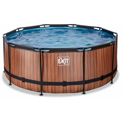 EXIT Wood zwembad ø360x122cm met filterpomp – bruin Het EXIT Wood zwembad ø360 x 122 cm is een rond frame zwembad met houtlook. Het zwembad is standaard voorzien van een filterpomp en een zwembadtrap, waarmee je veilig het zwembad in en uit kunt stappen. Het frame zwembad biedt genoeg ruimte om heerlijk op een luchtbed te dobberen. En wil je toch liever onder water zwemmen? Het EXIT Wood zwembad is maar liefst 122 centimeter diep waardoor je echt onder water kunt duiken. Met het hoogwaardige frame zwembad van EXIT Toys beleef je gegarandeerd de leukste wateravonturen in je eigen tuin! Een mooi zwembad voor in je tuin Het Wood zwembad heeft een modern en stoer houtpatroon op de zijkant en is daarmee een échte blikvanger in de tuin. De binnenzijde van het zwembad is blauw, voor het frisse zwembadgevoel. Het EXIT zwembad is uitgevoerd met sterke 3-laags wanden, van PVC en polyester. De ronde vorm van het zwembad creëert een gezellige sfeer en zorgt ervoor dat je eenvoudig met meerdere personen plezier kunt beleven in het zwembad. Ontdek wie het snelst een baantje kan trekken, dobber samen rond op een luchtbed of duik speeltjes van de bodem op. Kortom: met de ronde zwembaden van EXIT Toys verveel je je geen moment. Jarenlang een frisse duik in je zwembad Ontdek hoe stevig een rond opzetzwembad kan zijn: het gepoedercoate stalen frame en de sterke poten van het EXIT Wood zwembad zorgen ervoor dat het bad altijd stabiel staat en jarenlang meegaat. De meegeleverde filterpomp houdt het water schoon en in beweging zodat vervuiling van het water wordt tegengegaan. De filterpomp kan eenvoudig aan het zwembad worden gemonteerd en door middel van filtercartridges wordt het water ververst. In het EXIT Wood zwembad neem je altijd een frisse duik! Standaard inbegrepen * Zwart stalen zwembadframe ø360x122m * Bruine liner met stoer houtpatroon * Inclusief filterpomp met cartridge * Inclusief zwembadtrap * Inclusief liner reparatieset * Handleiding framebad (https://www.exittoys.nl/zwembad-o360x122cm-met-filterpomp/handleiding-zwembad-o360x122cm-met-filterpomp-c80fbb5f.pdf) * Handleiding pomp (https://www.exittoys.nl/zwembad-o360x122cm-met-filterpomp/handleiding-zwembad-o360x122cm-met-filterpomp-ed8d71a5.pdf) * Handleiding zwembadtrap (https://www.exittoys.nl/zwembad-o360x122cm-met-filterpomp/handleiding-zwembad-o360x122cm-met-filterpomp-ee4caa54.pdf)