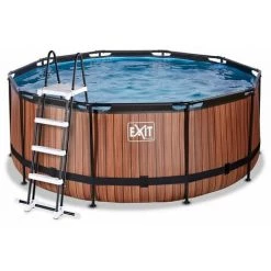 EXIT Wood zwembad ø360x122cm met zandfilterpomp – bruin Het EXIT Wood zwembad ø360 x 122 cm is een rond frame zwembad met houtlook. Het zwembad is standaard voorzien van een zandfilterpomp en een zwembadtrap, waarmee je veilig het zwembad in en uit kunt stappen. Het frame zwembad biedt genoeg ruimte om heerlijk op een luchtbed te dobberen. En wil je toch liever onder water zwemmen? Het EXIT Wood zwembad is maar liefst 122 centimeter diep waardoor je echt onder water kunt duiken. Met het hoogwaardige frame zwembad van EXIT Toys beleef je gegarandeerd de leukste wateravonturen in je eigen tuin! Een mooi zwembad voor in je tuin Het Wood zwembad heeft een modern en stoer houtpatroon op de zijkant en is daarmee een échte blikvanger in de tuin. De binnenzijde van het zwembad is blauw, voor het frisse zwembadgevoel. Het EXIT zwembad is uitgevoerd met sterke 3-laags wanden, van PVC en polyester. De ronde vorm van het zwembad creëert een gezellige sfeer en zorgt ervoor dat je eenvoudig met meerdere personen plezier kunt beleven in het zwembad. Ontdek wie het snelst een baantje kan trekken, dobber samen rond op een luchtbed of duik speeltjes van de bodem op. Kortom: met de ronde zwembaden van EXIT Toys verveel je je geen moment. Jarenlang een frisse duik in je zwembad Ontdek hoe stevig een rond opzetzwembad kan zijn: het gepoedercoate stalen frame en de sterke poten van het EXIT Wood zwembad zorgen ervoor dat het bad altijd stabiel staat en jarenlang meegaat. En het meegeleverde watercirculatiesysteem maakt dit zwembad helemaal af. De hoogwaardige zandfilterpomp reinigt de kleinste deeltjes uit het zwembad door het water krachtig door het filterbed heen te pompen. Dit zorgt ervoor dat vuil, zoals zand, ongedierte of algen achter blijven in het filter. In het EXIT Wood zwembad neem je altijd een frisse duik! Standaard inbegrepen * Zwart stalen zwembadframe ø360 x 122 cm * Bruine liner met stoer houtpatroon * Inclusief zandfilterpomp (filtermateriaal is niet inbegrepen) * Inclusief zwembadtrap * Inclusief liner reparatieset * Handleiding framebad (https://www.exittoys.nl/zwembad-o360x122cm-met-zandfilterpomp/handleiding-zwembad-o360x122cm-met-zandfilterpomp-c80fbb5f.pdf) * Handleiding pomp (https://www.exittoys.nl/zwembad-o360x122cm-met-zandfilterpomp/handleiding-zwembad-o360x122cm-met-zandfilterpomp-0f78a221.pdf) * Handleiding zwembadtrap (https://www.exittoys.nl/zwembad-o360x122cm-met-zandfilterpomp/handleiding-zwembad-o360x122cm-met-zandfilterpomp-ee4caa54.pdf)