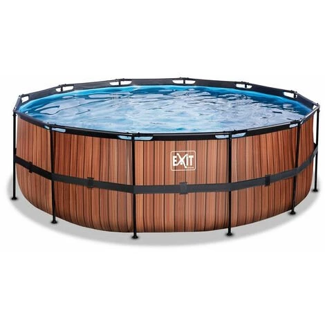EXIT Wood zwembad ø427x122cm met filterpomp – bruin Het EXIT Wood zwembad ø427 x 122 cm is een rond frame zwembad met houtlook. Het zwembad is standaard voorzien van een filterpomp en een zwembadtrap, waarmee je veilig het zwembad in en uit kunt stappen. Door de grote diameter van het zwembad is er genoeg ruimte om heerlijk op een luchtbed te dobberen. En wil je toch liever onder water zwemmen? Het EXIT Wood zwembad is maar liefst 122 centimeter diep waardoor je echt onder water kunt duiken. Met het hoogwaardige frame zwembad van EXIT Toys beleef je gegarandeerd de leukste wateravonturen in je eigen tuin! Een mooi zwembad voor in je tuin Het Wood zwembad heeft een modern en stoer houtpatroon op de zijkant en is daarmee een échte blikvanger in de tuin. De binnenzijde van het zwembad is blauw, voor het frisse zwembadgevoel. Het EXIT zwembad is uitgevoerd met sterke 3-laags wanden, van pvc en polyester. De ronde vorm van het zwembad creëert een gezellige sfeer en zorgt ervoor dat je eenvoudig met meerdere personen plezier kunt beleven in het zwembad. Ontdek wie het snelst een baantje kan trekken, dobber samen rond op een luchtbed of duik speeltjes van de bodem op. Kortom: met de ronde zwembaden van EXIT Toys verveel je je geen moment. Jarenlang een frisse duik in je zwembad Ontdek hoe stevig een rond opzetzwembad kan zijn: het gepoedercoate stalen frame en de sterke poten van het EXIT Wood zwembad zorgen ervoor dat het bad altijd stabiel staat en jarenlang meegaat. De meegeleverde filterpomp houdt het water schoon en in beweging zodat vervuiling van het water wordt tegengegaan. In het EXIT Wood zwembad neem je altijd een frisse duik! Standaard inbegrepen * Zwart stalen zwembadframe ø427 x 122 cm * Bruine liner met stoer houtpatroon * Filterpomp met cartridge * Liner reparatieset * Zwembadtrap * Handleiding framebad (https://www.exittoys.nl/zwembad-o427x122cm-met-filterpomp/handleiding-zwembad-o427x122cm-met-filterpomp-db96edb0.pdf) * Handleiding pomp (https://www.exittoys.nl/zwembad-o427x122cm-met-filterpomp/handleiding-zwembad-o427x122cm-met-filterpomp-ed8d71a5.pdf) * Handleiding zwembadtrap (https://www.exittoys.nl/zwembad-o427x122cm-met-filterpomp/handleiding-zwembad-o427x122cm-met-filterpomp-94c84de3.pdf)