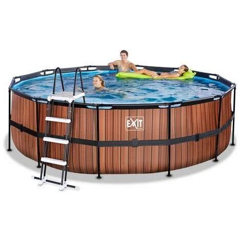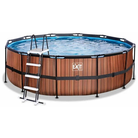 EXIT Wood zwembad ø450x122cm met filterpomp – bruin Het EXIT Wood zwembad ø450 x 122 cm is een rond frame zwembad met houtlook. Het zwembad is standaard voorzien van een filterpomp en een zwembadtrap, waarmee je veilig het zwembad in en uit kunt stappen. Door de royale diameter van het zwembad is er genoeg ruimte om heerlijk op een luchtbed te dobberen. En wil je toch liever onder water zwemmen? Het EXIT Wood zwembad is maar liefst 122 centimeter diep waardoor je echt onder water kunt duiken. Met het hoogwaardige frame zwembad van EXIT Toys beleef je gegarandeerd de leukste wateravonturen in je eigen tuin! Een mooi zwembad voor in je tuin Het Wood zwembad heeft een modern en stoer houtpatroon op de zijkant en is daarmee een échte blikvanger in de tuin. De binnenzijde van het zwembad is blauw, voor het frisse zwembadgevoel. Het EXIT zwembad is uitgevoerd met sterke 3-laags wanden, van PVC en polyester. De ronde vorm van het zwembad creëert een gezellige sfeer en zorgt ervoor dat je eenvoudig met meerdere personen plezier kunt beleven in het zwembad. Ontdek wie het snelst een baantje kan trekken, dobber samen rond op een luchtbed of duik speeltjes van de bodem op. Kortom: met de ronde zwembaden van EXIT Toys verveel je je geen moment. Jarenlang een frisse duik in je zwembad Ontdek hoe stevig een rond opzetzwembad kan zijn: het gepoedercoate stalen frame en de sterke poten van het EXIT Wood zwembad zorgen ervoor dat het bad altijd stabiel staat en jarenlang meegaat. De meegeleverde filterpomp houdt het water schoon en in beweging zodat vervuiling van het water wordt tegengegaan. De filterpomp kan eenvoudig aan het zwembad worden gemonteerd en door middel van filtercartridges wordt het water ververst. In het EXIT Wood zwembad neem je altijd een frisse duik! Standaard inbegrepen * Zwart stalen zwembadframe ø450 x 122 cm * Bruine liner met stoer houtpatroon * Inclusief filterpomp met cartridge * Inclusief liner reparatieset * Inclusief zwembadtrap * Handleiding framebad (https://www.exittoys.nl/zwembad-o450x122cm-met-filterpomp/handleiding-zwembad-o450x122cm-met-filterpomp-c80fbb5f.pdf) * Handleiding pomp (https://www.exittoys.nl/zwembad-o450x122cm-met-filterpomp/handleiding-zwembad-o450x122cm-met-filterpomp-ed8d71a5.pdf) * Handleiding zwembadtrap (https://www.exittoys.nl/zwembad-o450x122cm-met-filterpomp/handleiding-zwembad-o450x122cm-met-filterpomp-ee4caa54.pdf)