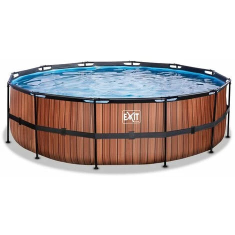 EXIT Wood zwembad ø488x122cm met zandfilterpomp – bruin Het EXIT Wood zwembad ø488 x 122 cm is een rond frame zwembad met houtlook. Het zwembad is standaard voorzien van een zandfilterpomp en een zwembadtrap, waarmee je veilig het zwembad in en uit kunt stappen. Door de zeer royale diameter en een diepte van maar liefst 122 centimeter beleef je in het zwembad van EXIT Toys een zomerlang zwemplezier met familie en vrienden. Een mooi zwembad voor in je tuin Het Wood zwembad heeft een modern en stoer houtpatroon op de zijkant en is daarmee een échte blikvanger in de tuin. De binnenzijde van het zwembad is blauw, voor het frisse zwembadgevoel. Het EXIT zwembad is uitgevoerd met sterke 3-laags wanden van pvc en polyester. De ronde vorm van het zwembad creëert een gezellige sfeer en zorgt ervoor dat je eenvoudig met meerdere personen plezier kunt beleven in het zwembad. Ontdek wie het snelst een baantje kan trekken, dobber samen rond op een luchtbed of duik speeltjes van de bodem op. Kortom: met de ronde zwembaden van EXIT Toys verveel je je geen moment. Jarenlang een frisse duik in je zwembad Ontdek hoe stevig een rond opzetzwembad kan zijn: het gepoedercoate stalen frame en de sterke poten van het EXIT Wood zwembad zorgen ervoor dat het bad altijd stabiel staat en jarenlang meegaat. En het meegeleverde watercirculatiesysteem maakt dit zwembad helemaal af. De hoogwaardige zandfilterpomp reinigt de kleinste deeltjes uit het zwembad door het water krachtig door het filterbed heen te pompen. Dit zorgt ervoor dat vuil, zoals zand, ongedierte of algen achterblijven in het filter. In het EXIT Wood zwembad neem je altijd een frisse duik! Standaard inbegrepen * Zwart stalen zwembadframe ø488 x 122 cm * Bruine liner met stoer houtpatroon * Zandfilterpomp (filtermateriaal is niet inbegrepen) * Liner reparatieset * Zwembadtrap * Handleiding framebad (https://www.exittoys.nl/zwembad-o488x122cm-met-zandfilterpomp/handleiding-zwembad-o488x122cm-met-zandfilterpomp-db96edb0.pdf) * Handleiding pomp (https://www.exittoys.nl/zwembad-o488x122cm-met-zandfilterpomp/handleiding-zwembad-o488x122cm-met-zandfilterpomp-ce4b70f4.pdf) * Handleiding zwembadtrap (https://www.exittoys.nl/zwembad-o488x122cm-met-zandfilterpomp/handleiding-zwembad-o488x122cm-met-zandfilterpomp-94c84de3.pdf)