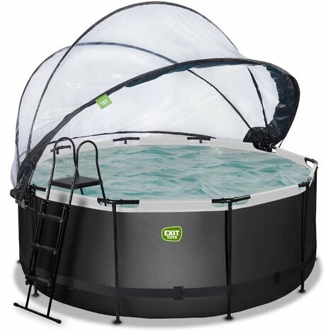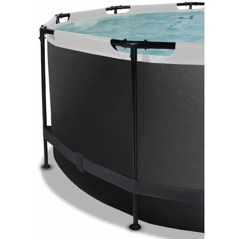 La piscine EXIT Black Leather ø360 x 122 cm est une piscine tubulaire ronde et couverte avec un imprimé cuir noir. La piscine est équipée d’une pompe filtrante à sable et d’une échelle. De plus, cette piscine est livrée avec un ensemble d’accessoires complet qui te permet de préparer ta piscine à la baignade en un rien de temps et de facilement la maintenir en parfait état. La piscine EXIT Black Leather a un aspect luxueux grâce à son motif unique de cuir. Son extérieur noir et son intérieur gris clair assurent une piscine à l’allure élégante et moderne dans le jardin. La piscine EXIT est munie de parois triples couches solides en pvc et polyester.Avec le dôme de piscine EXIT, tu ne dépends plus de la météo. Le dôme assure qu’aucune saleté ne tombe dans l’eau et permet en même temps de chauffer ton eau, car la chaleur du soleil est retenue sous le dôme. Le dôme est très facile à ouvrir et à fermer grâce à son mécanisme de charnière unique et la toile transparente ne cache rien de ce qui se passe à l’extérieur de la piscine.On a pensé à tout pour le kit d’accessoires EXIT : l’ensemble se compose d’un kit d’entretien, d’un pédiluve, de bandelettes d’analyse, d’un diffuseur de chlore flottant, de ouate filtrante, d’une lampe LED et d’un tapis de sol. Découvre la stabilité d’une piscine ronde: la cadre en acier thermolaquée et les pieds robustes de la piscine EXIT Black Leather garantissent la stabilité et la longévité de la piscine. La pompe filtrante incluse conserve l’eau propre et en mouvement afin d’éviter sa contamination. La pompe filtrante à sable de haute qualité nettoie les plus petites saletés de la piscine en pompant l’eau à travers le filtre. Ainsi, la saleté, comme le sable, les insectes ou les algues, resteront dans le filtre.