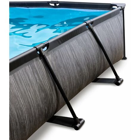 La piscine EXIT Black Wood 220 x 150 x 65 cm est une piscine tubulaire rectangulaire avec un aspect bois noir. La piscine est équipée d’une pompe filtrante et se distingue des autres piscines par son élégant motif imitation bois sombre. Découvre la stabilité d’une piscine rectangulaire: la cadre en acier thermolaquée et les coins forts de la piscine EXIT Black Wood garantissent la stabilité et la longévité de la piscine. La pompe filtrante incluse conserve l’eau propre et en mouvement afin d’éviter sa contamination.L’élégant motif imitation bois et le cadre noir procurent à la piscine Black Wood un aspect unique. L’intérieur de la piscine est bleu, pour une sensation de fraîcheur intemporelle. La piscine a un cadre bas et est donc facile d’accès pour les plus petits.