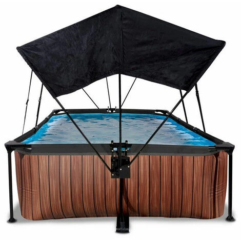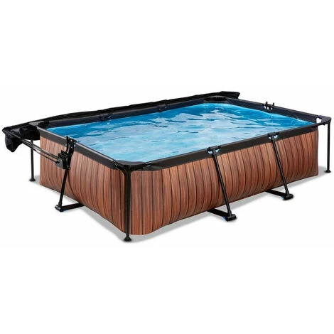 La piscine EXIT Wood 300 x 200 x 65 cm est une piscine tubulaire rectangulaire, de couleur marron. La piscine est équipée d’une pompe filtrante et d’un voile d’ombrage, qui te protège du soleil en été. Découvre la stabilité d’une piscine rectangulaire: la cadre en acier thermolaquée et et les coins forts de la piscine EXIT Wood garantissent la stabilité et la longévité de la piscine. La pompe filtrante incluse conserve l’eau propre et en mouvement afin d’éviter sa contamination. Le voile d’ombrage unique d’EXIT Toys offre une protection optimale contre le soleil. Grâce au système d’éventail convivial, tu crées de l’ombre, recouvrant partiellement ou entièrement ta piscine en un tour de main, de sorte que tu puisses également te baigner de façon insouciante, en plein soleil. Grâce aux sangles réglables, tu peux bouger le voile d’ombrage au fur et à mesure du déplacement des rayons du soleil et le fixer à n’importe quelle hauteur. Le voile d’ombrage a un design élégant et une finition de grande qualité. L’élégante finition en imitation bois procure à la piscine Wood un aspect unique. Grâce à cette allure naturelle, la piscine s’intègrera parfaitement dans ton jardin. L’intérieur de la piscine est bleu, pour une sensation de fraîcheur intemporelle. La piscine a un cadre bas et est donc facile d’accès pour les plus petits.