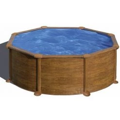 Cette gamme est livrée avec l’ensemble des composants nécessaires au montage : paroi acier imitation bois, filtre à sable (sable inclus), liner, skimmer, échelle de sécurité et tapis de sol.