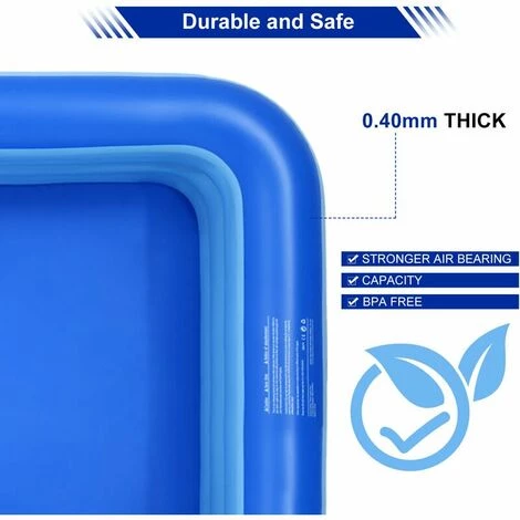 Gonflage et dégonflage rapides et faciles : à l’aide de valves spéciales, de pompes électriques, de pompes à main et même de sèche-cheveux, vous pouvez refroidir la piscine gonflable pour enfants en quelques minutes sans utiliser d’air chaud. La piscine pour enfants utilise une valve à double verrouillage pour se dégonfler rapidement.