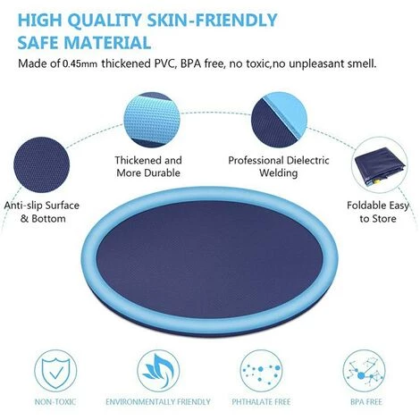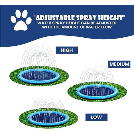 Grand diamètre taille -59pouces de grand espace suffit pour les chiens animaux de compagnie et les enfants jouent ensemble. Le tapis de pulvérisation de la fontaine avec de nombreux trous d’eau fournit une bonne fontaine à jouer avec de l’eau.
