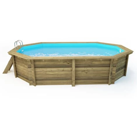Kit piscine bois Scandinave ou Biélorusse octogonale allongée – 4.86 x 3.36 x 1.30 m – Pin traité autoclave classe 4 FSC – 45mm – Liner Bleu pâle 75/100 ème – Filtration 4 m3/h – Margelle en pin – Feutre de fond et de parois – 1 sac de sable – Production Européenne.Cette piscine en bois Bahia vous permettra de passer un bel été en famille. Grâce à ses dimensions (4.86 x 3.36 m) vous pourrez ainsi effectuer quelques brasses suivi d’une relaxation bien méritée. Vos enfants se feront un plaisir de s’amuser avec des jeux aquatiques. A votre guise, vous pouvez l’installer hors sol, semi enterrée ou enterrée. La structure en bois se fondera parfaitement au milieu naturel de votre jardin.