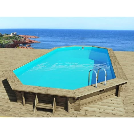 Cette piscine en bois Sevilla vous permettra de passer un bel été en famille. Grâce à ses dimensions (8.57 x 4.57m) vous pourrez ainsi combiner la nage et la relaxation puis vos enfants se feront un plaisir de s’amuser avec des jeux aquatiques. A votre guise, vous pouvez l’installer hors sol, semi enterrée ou enterrée. La structure en bois se fondera parfaitement au milieu naturel de votre jardin. De forme octogonale allongée cette belle piscine de 8.57 x 4.57 x 1.45 m livrée avec de nombreux accessoires: un liner 75/100 ème, une filtration 8.3 m3/h, des margelles en pin . De plus, cette piscine est une production Européenne garantie FSC. Structure : Piscine bois avec une structure en pin du Nord traitée en autoclave classe IV. Forme : Octogonale allongée. Installation : Hors-sol / Semi-enterrée / Enterrée. Epaisseur des madriers : 42/45 mm. Dimensions extérieures (L x l x h m) : 8.57 x 4.57 x 1.45 m. Dimensions intérieures (L x l x h m) : 8.04 x 4.04 x 1.41 m. Volume ( m3) : 42 m3. Filtration : Platine de filtration à sable 8.3 m3/h – Pompe 1 cv (sable fourni et colisé dans la palette des bois). Liner : Liner bleu pâle 75/100 e – Accrochage Hung. Kit Hors bord : Non. Echelles : Echelle intérieure inox et extérieure bois fournies (colisées dans la palette des bois). Tapis de sol : Feutre de fond et de parois – 200 gr/m². Bâche été : En option. Bâche hiver : En option. Kit matériel d’entretien : En option. Prise balai : Oui. Skimmer : Oui. Buse de refoulement : Oui. Surface d’installation : 9 x 5 m – Dalle béton obligatoire. Temps de montage : 2 jours à 1 ou 2 personnes hors dalle béton. Normes : Certification FSC. Livraison : Sur RDV avec camion 38 tonnes. Rappel sur la sécurité des piscines : Toute piscine enterrée a l’obligation d’être équipée d’un système de sécurité homologué sous peine d’une amende de 45000 euros. Poids : 1364 kg. Garantie : Le bois étant un matériau vivant soumis aux variations de température et d’humidité, les dimensions indiquées ci-dessous doivent être considérées à titre indicatif, elles peuvent varier de ± 2 à 12%. Surface de nage : 8.04 x 4.04 m. Type de filtration : de 9m3/h à 11m3/h. Catégorie bassins : Octogonale entre 8 à 10 m. Profondeur : de 1.40m à 1.50m. Colisage : 2 colis : – 6,12 x 1,2 x 0,63 m, 1295 kg – 1,14 x 1,21 x 0,63 m, 69 kg.