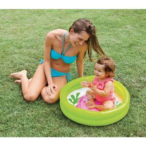 Pataugeoire 61×15 cm, avec un fond moulé avec 2 graphique différent, tortue jaune, vert, baleine, capacité d’eau de 15 litres, a suggéré niveau de 9 cm de remplissage, deux anneaux gonflables, âge 1-3 ans longueur: 26 Largeur: 2 Hauteur: 32