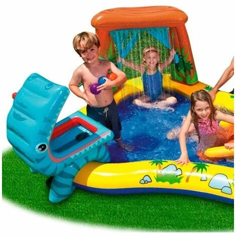Jeu gonflable avec piscine. Glissade le long du volcan, palmier arroseur si on le relie a un tuyau d’arrosage. Dimensions : 249 x 191 x 109 cm. Mixte. A partir de 3 ans. Livré a l’unité.