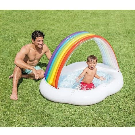 Cette piscine gonflable Rainbow amusera toute la famille et sonnera le démarrage des vraies vacances.