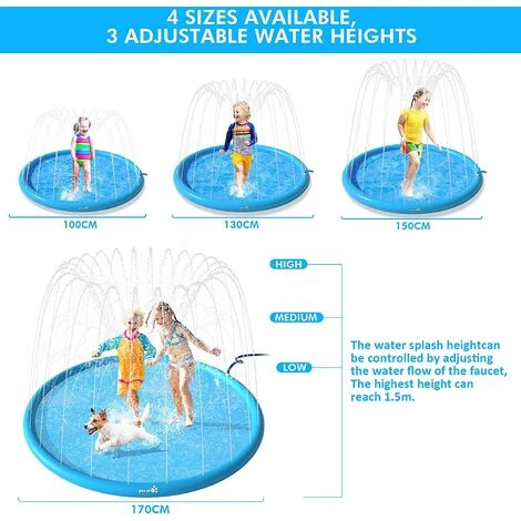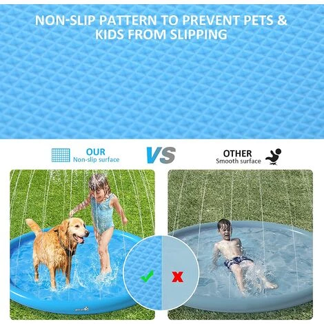 JUNJUN-Tapis De Jet D’eau, Tapis De Pulvérisation Antidérapant 0,55mm Épaisseur Anti-Déchirure, Splash Pad PVC Durable, Jet Fontaine Réglable, Jeu D’eau Exterieur Été Pour Enfant Adulte Chien