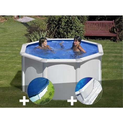 Piscine hors-sol en acier ronde Fidji de la marque Gré Indispensable pour passer des vacances entre amis dans la fraîcheur de l’eau, cette piscine en acier ronde Fidji vous offre un espace de nage et de jeux d’eau pour tous les goûts.Conçue avec une structure en tôle laminée à froid et traitée par galvanisation, la piscine hors-sol Gré vous assure une forte résistance dans le temps. Pour la baignade et le confort, elle est habillée d’un liner d’une épaisseur de 30/100 traité anti-UV pour prévenir son vieillissement prématuré.La piscine hors-sol acier ronde Fidji est équipée d’un système de filtration à sable (inclus) complet et d’un skimmer pour vous garantir une eau claire et propre tout au long de la saison de baignade. Pour accéder facilement et en toute sécurité au bassin, elle est livrée avec une échelle 2 x 3 marches.L’équipement de la piscine en acier ronde Fidji :