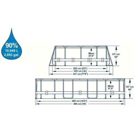 Kit Piscine Hors Sol Tubulaire BESTWAY – Power Steel™ – 488 X 305 X 107 Cm – Ovale (Avec Filtre A Sable, échelle, Bâche, Dif